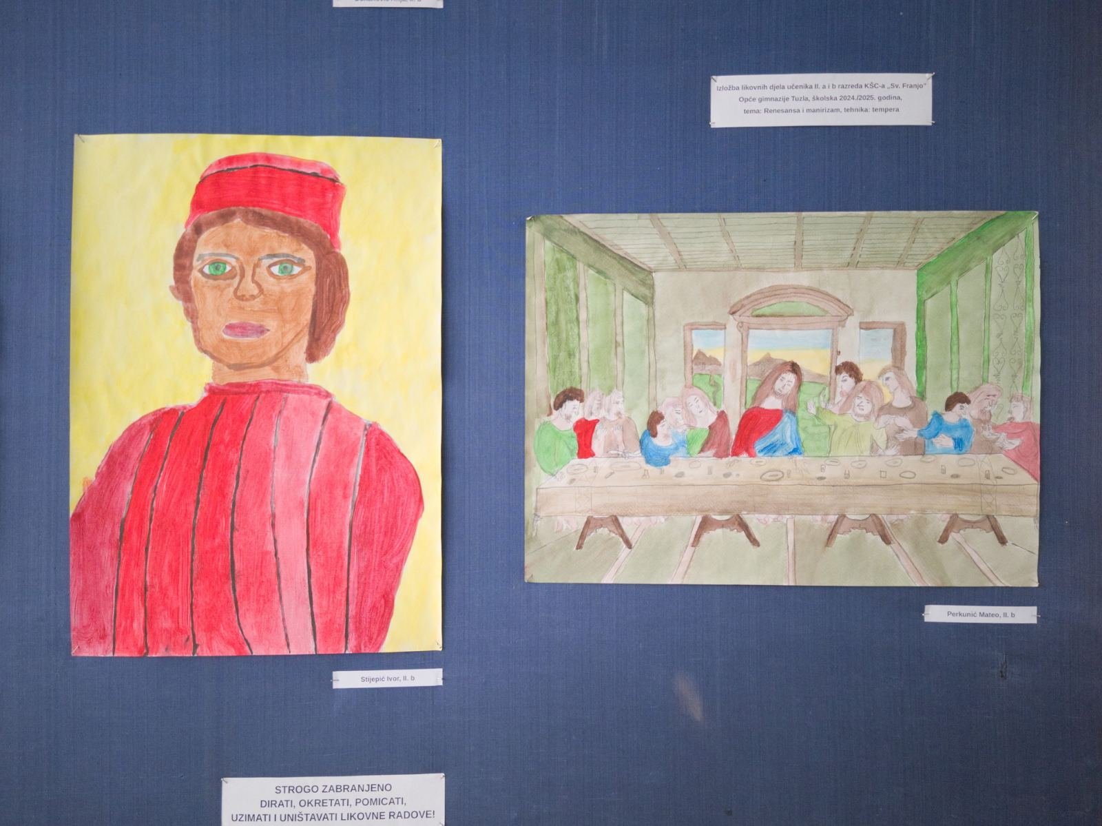 U prostoru škole realizirana je 7. izložba likovnih radova učenika Opće gimnazije »Sveti Franjo« Tuzla. Izloženi su radovi učenika 2. razreda na temu renesanse i manirizma.