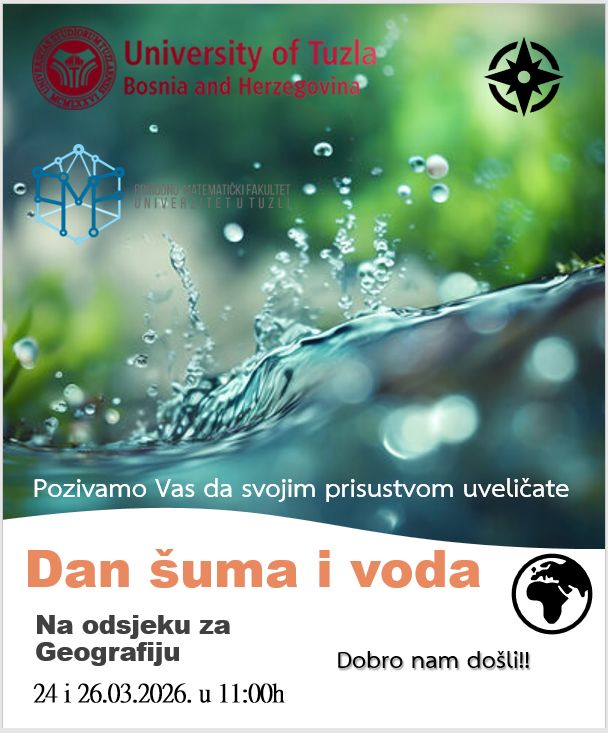 Odsjek za Geografiju Prirodno matematičkog fakulteta, Univerziteta u Tuzli 24. ožujka održao je manifestaciju koja je uključivala predavanje o značaju Dana voda i šuma.