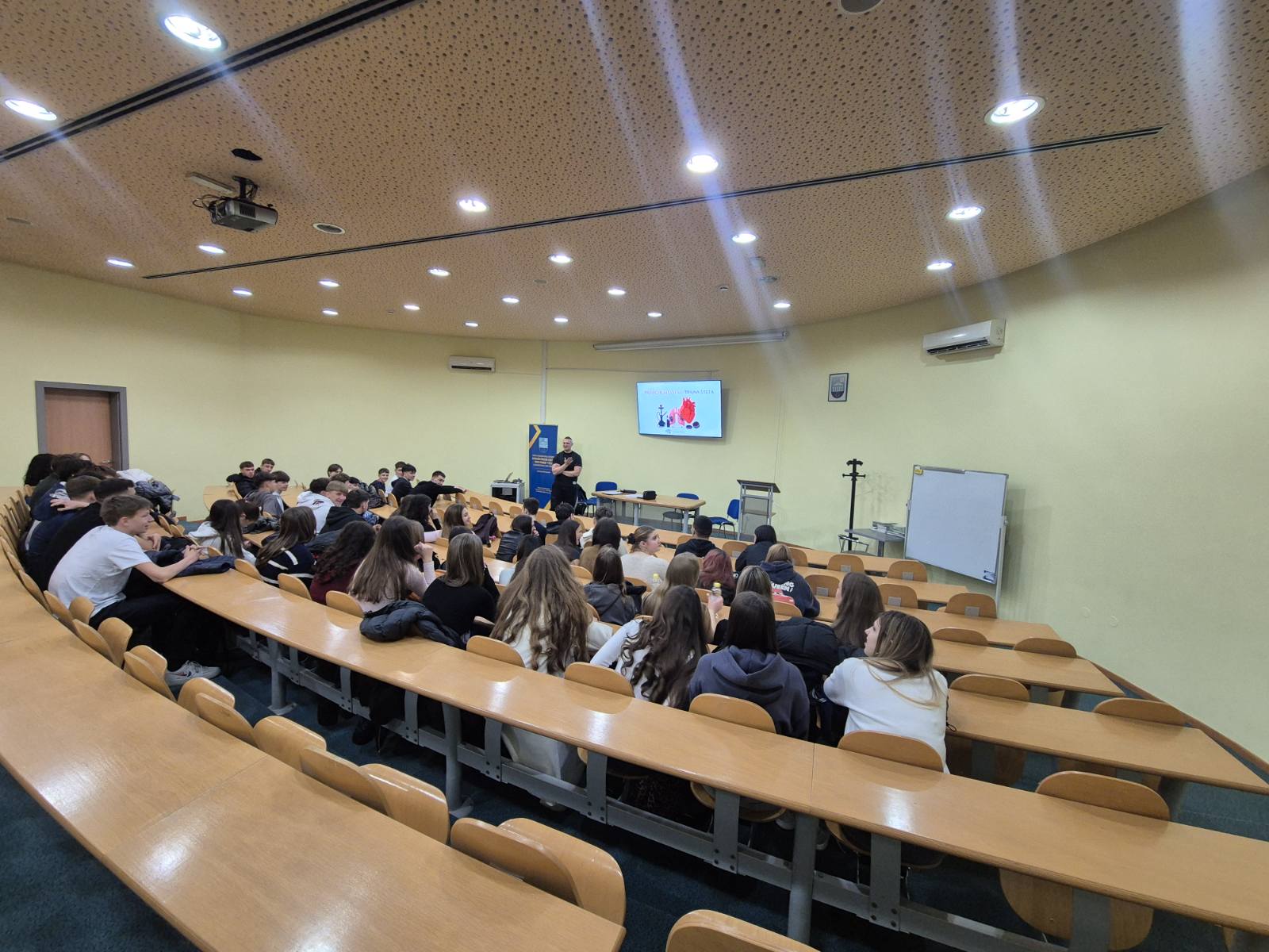 Dana 17. 3. učenici I. i II. razreda sudjelovali su na edukativnom predavanju pod nazivom »Brzi užitak – trajna šteta«, koje je organizirala Služba za preventivno-promotivnu zaštitu školske djece i omladine. Iako se često prezentiraju kao »manje štetne« alternative ili brzi podizači energije, proizvodi poput snusa, vape-a, nargila i energetskih pića kriju ozbiljne zamke. Kroz interaktivni razgovor, učenici su doznali kako nikotin i kofein u ranoj dobi utječu na razvoj mozga i srčani sustav, što se krije iza privlačnih okusa i mirisa koji stvaraju brzu ovisnost i zašto »trenutni fokus« ili »opuštanje« zapravo ostavljaju dugoročne posljedice na zdravlje.