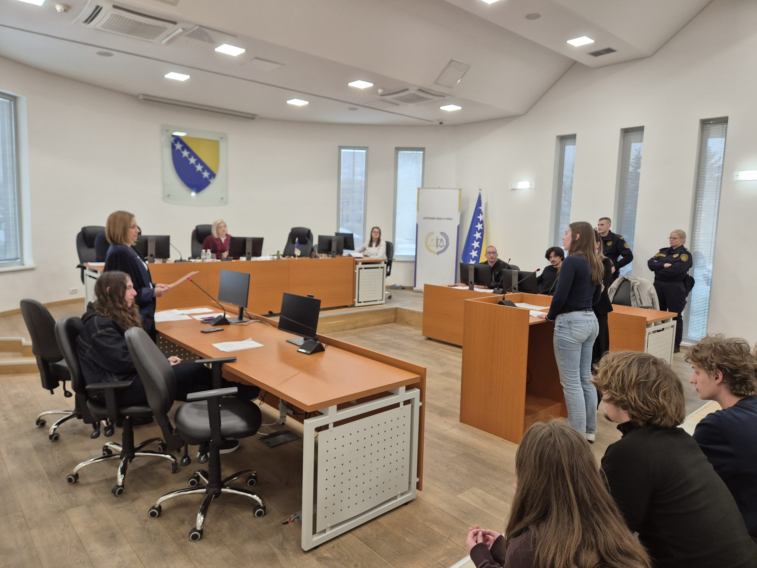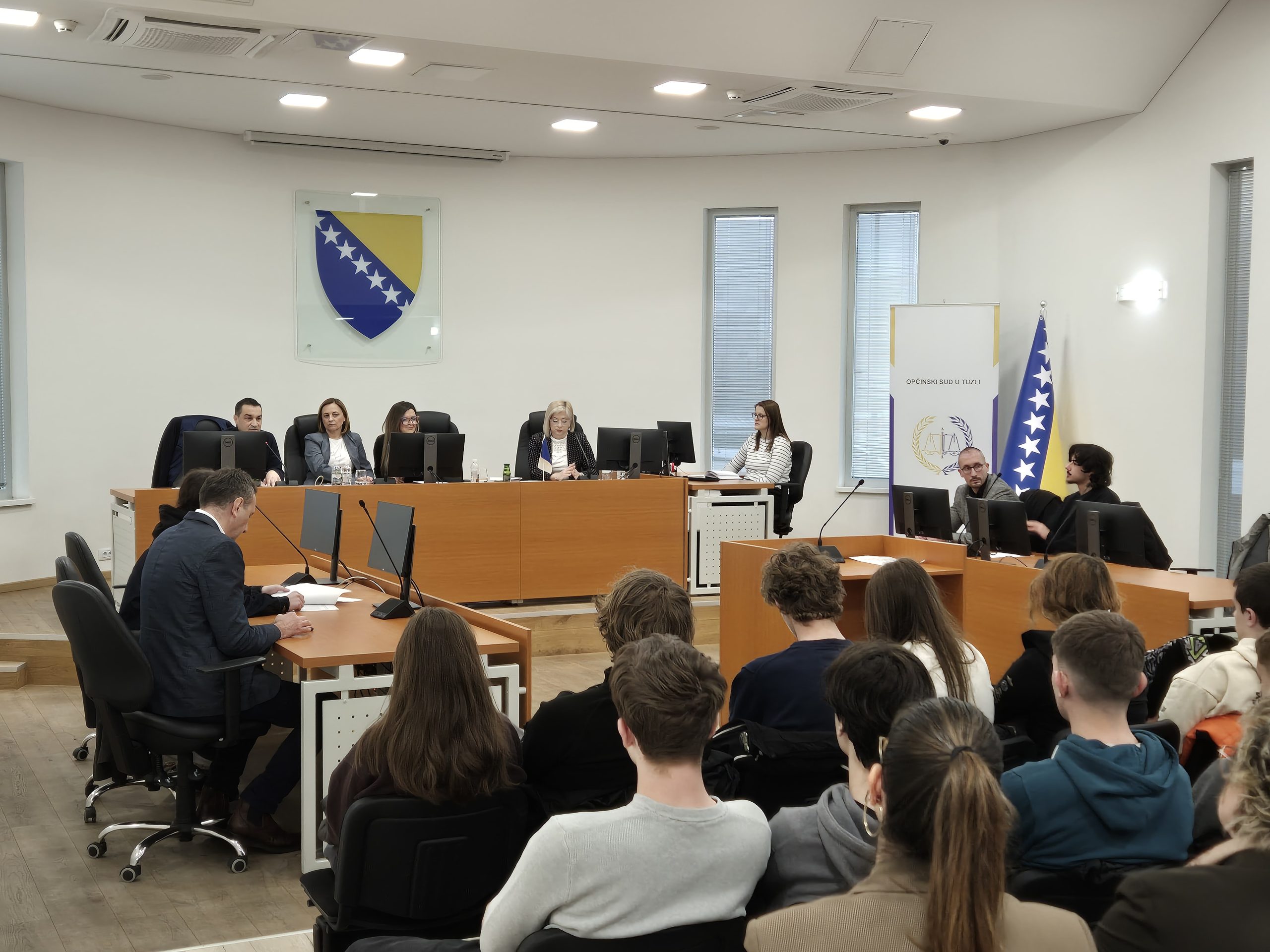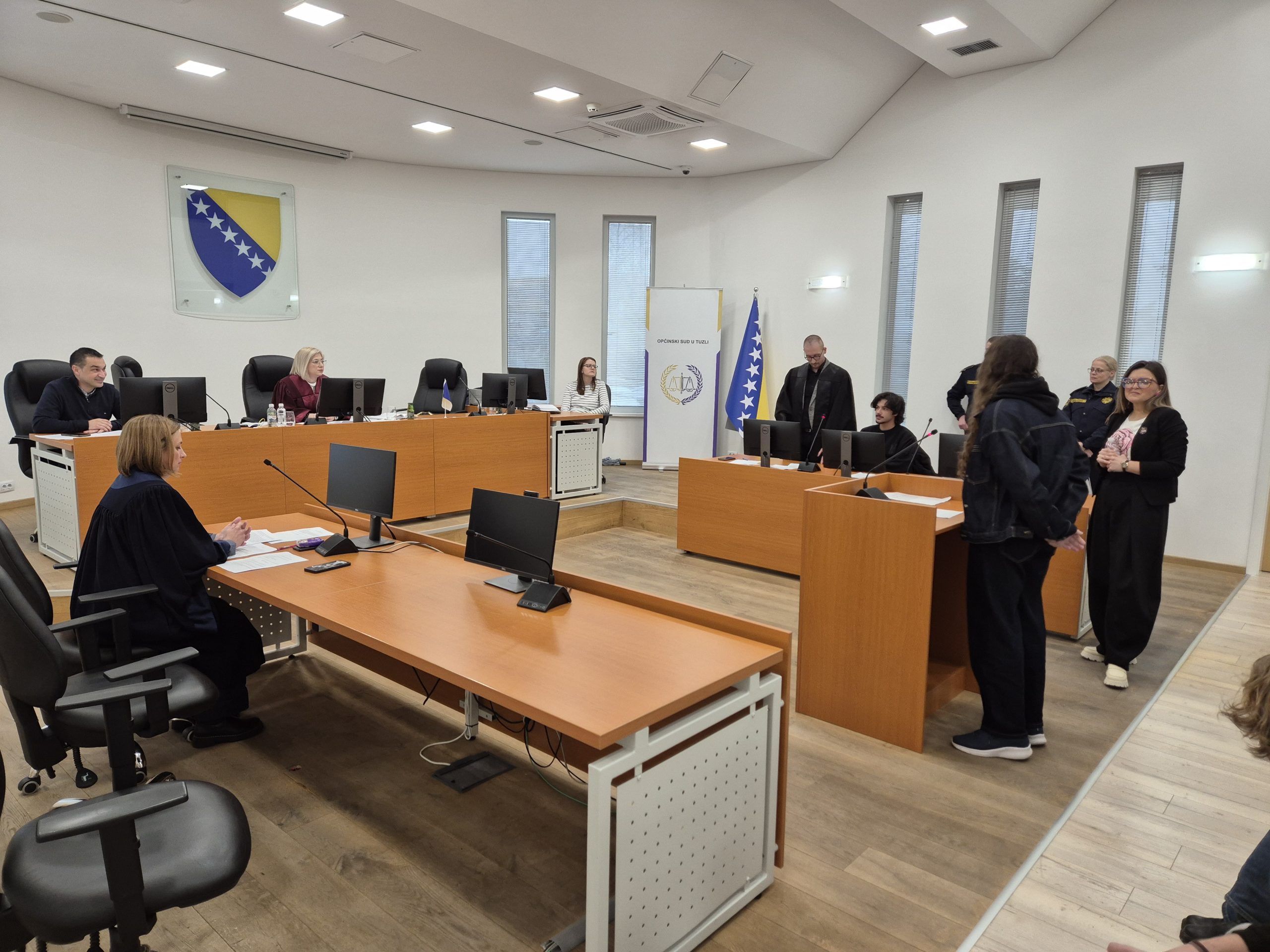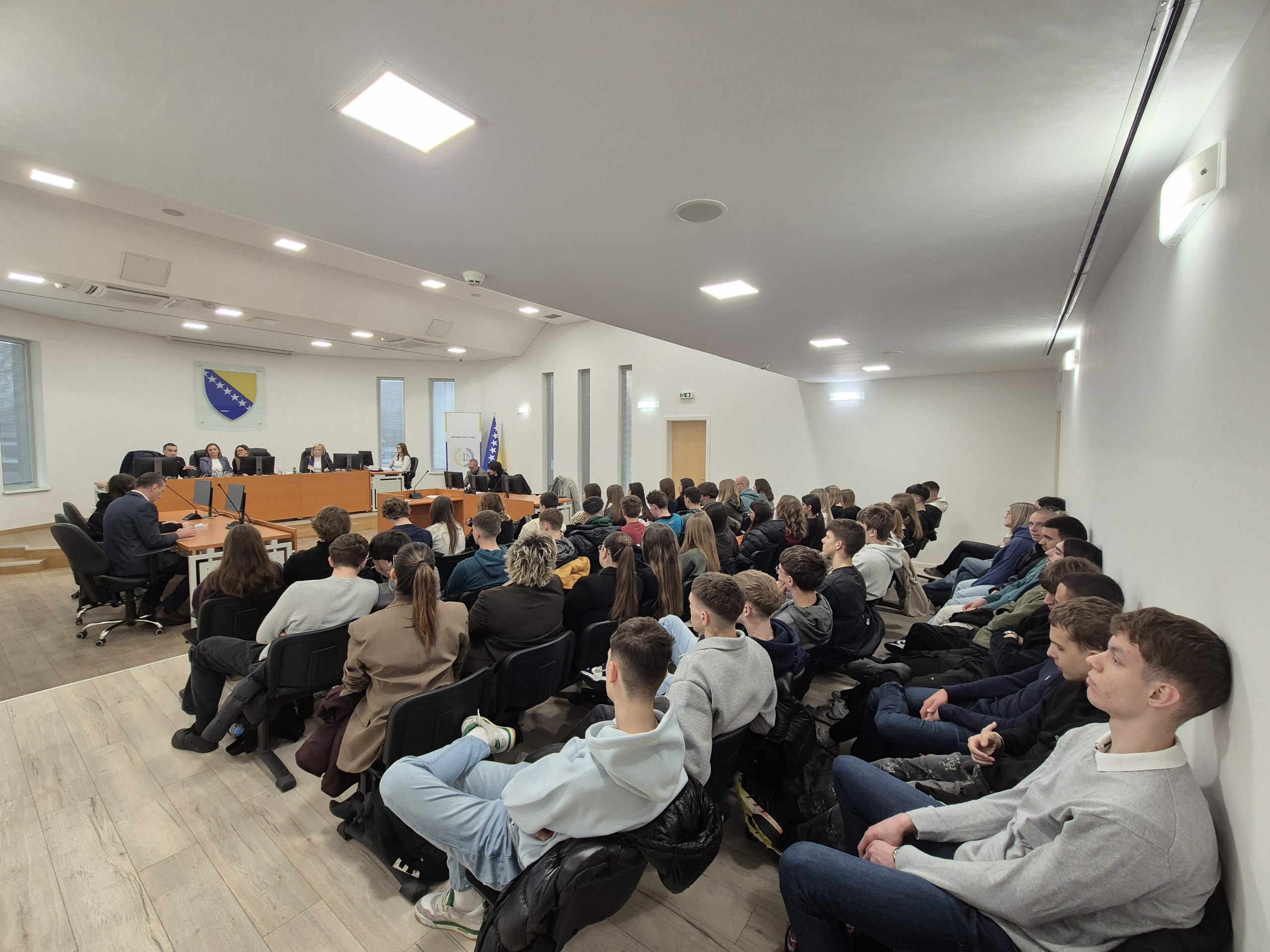 Edukacija je održana u velikoj sudnici Općinskog suda u Tuzli, gdje su učenici imali priliku da kroz neposredan kontakt sa predstavnicima pravosuđa i sigurnosnih institucija steknu uvid u praktične aspekte rada na predmetima vršnjačkog nasilja.