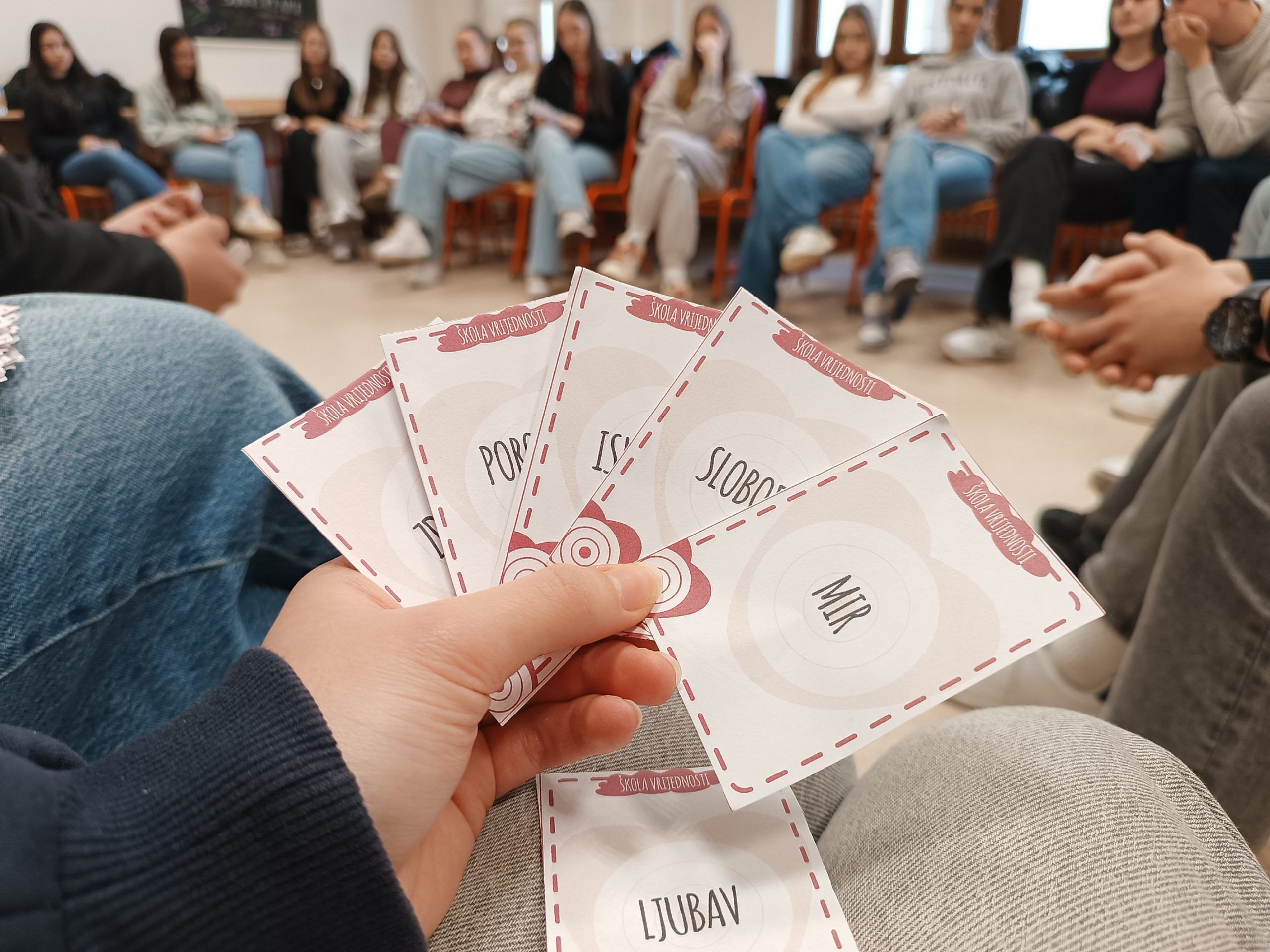 Nakon kratke pauze za osvježenje, uslijedila je radionica na temu vrijednosti, tijekom koje su učenici kroz interaktivne aktivnosti i razgovor promišljali o važnim životnim načelima poput prijateljstva, tolerancije i suradnje. Ova radionica potaknula je otvorenu komunikaciju i razmjenu mišljenja među sudionicima.