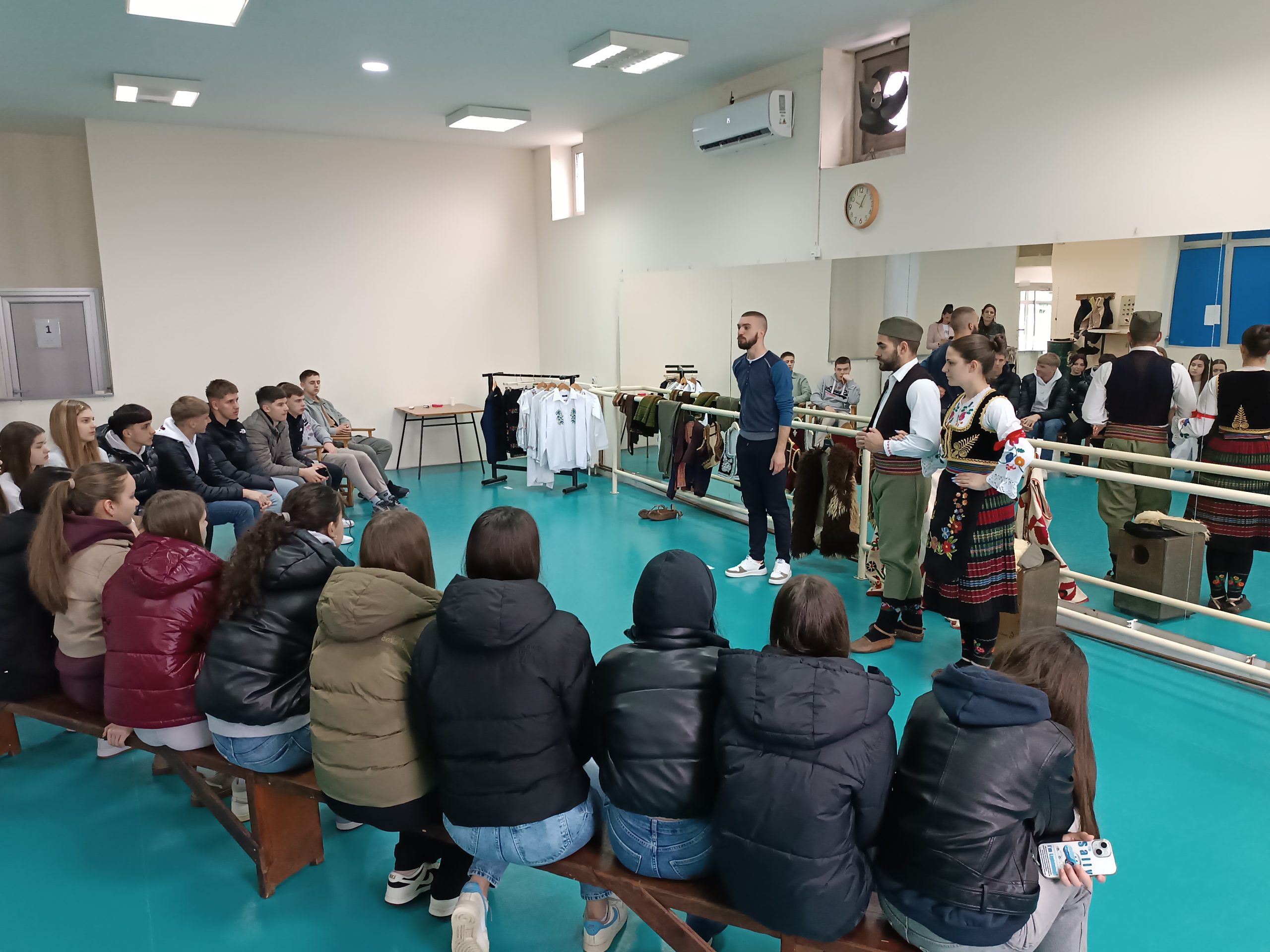 Dan je započeo gostovanjem učenika i profesora na lokalnoj televiziji, gdje su podijelili svoja iskustva u jutarnjem programu. U međuvremenu počela je plesna radionica »Hajde da plešemo!« u suradnji s KUD »Šumadija«, gdje su učenici imali priliku upoznati se s tradicionalnom nošnjom, običajima i plesovima te uživati u zajedničkom ritmu i pokretu. Atmosfera je bila ispunjena smijehom, glazbom i pozitivnom energijom, a sudionici su s oduševljenjem prihvatili izazov učenja novih koraka.
